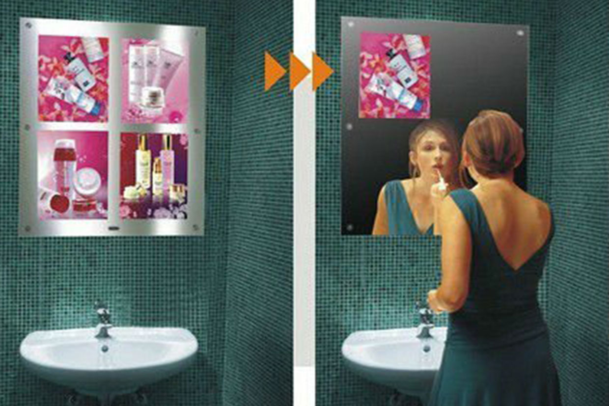 Medio innovador ideal para promocionar marcas, ya que toda el área del espejo es utilizada para hacer publicidad.